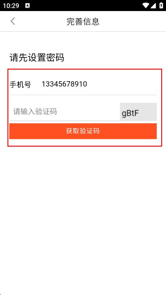 4、進(jìn)入完善信息頁(yè)面,點(diǎn)擊“獲取驗(yàn)證碼”按鈕,輸入收到的驗(yàn)證碼,完成密碼設(shè)置相關(guān)操作。