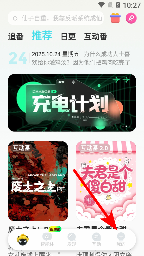 1、在快點閱讀推薦頁面,點擊右下角我的選項,進入個人中心界面。