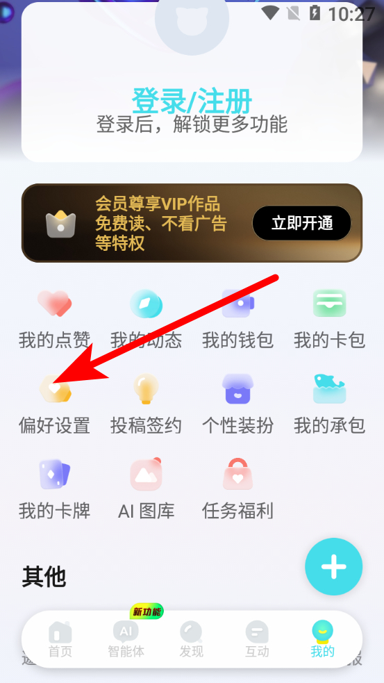 2、在個人中心界面,點擊偏好設(shè)置選項,進入偏好設(shè)置頁面。