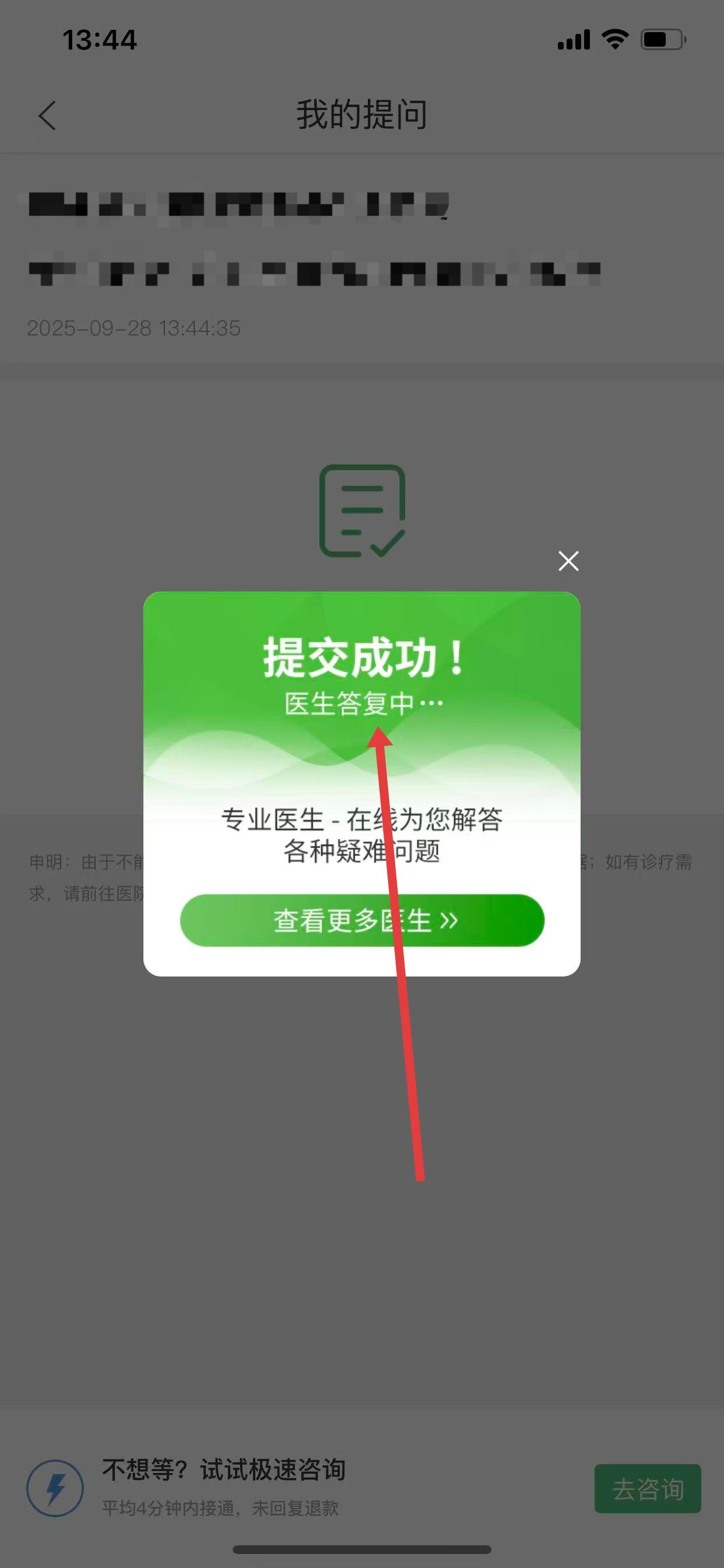 3、完成信息填寫后,等待醫(yī)生回復。