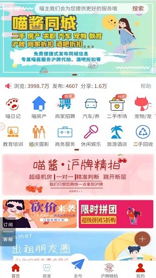 可以瀏覽發(fā)布上海的同城信息類似于上海論壇哦更可以享受喵醬會員門店商戶的折扣哦!!!
