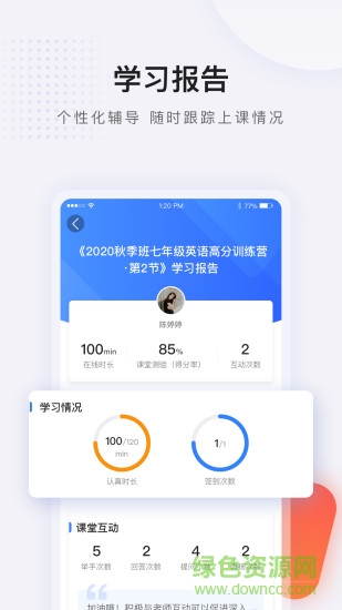 助教全程陪伴,作業(yè)錯(cuò)題講解視頻實(shí)時(shí)推動(dòng),讓疑難問題不留堂;家長(zhǎng)無需全程陪伴,一鍵實(shí)時(shí)監(jiān)督學(xué)生上課情況,輕松獲取學(xué)生個(gè)性化學(xué)習(xí)報(bào)告,第一時(shí)間掌握孩子學(xué)習(xí)情況。