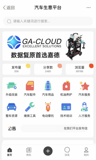 生意平臺:建立汽車行業(yè)商圈,發(fā)布產(chǎn)品信息,技術培訓,人才招聘等信息,建立聯(lián)系,促進成交。