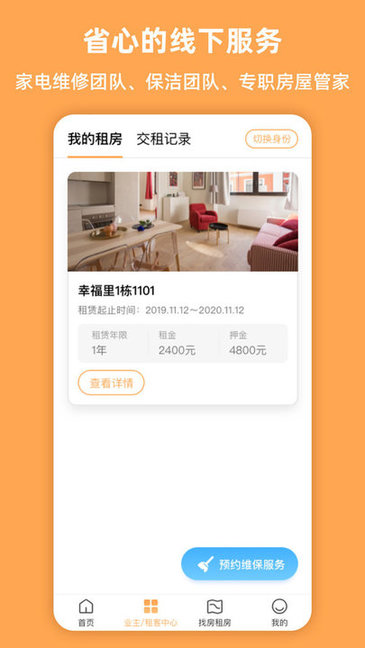 【e房無憂】平臺化規(guī)范可靠,多年家裝工裝設(shè)計(jì)經(jīng)驗(yàn),采用公眾號+app+線下服務(wù)結(jié)合的O2O運(yùn)營模式,全方位服務(wù)業(yè)主及租戶;避免傳統(tǒng)房東受打擾情況,業(yè)主對托管房屋狀態(tài)、歷史租客、維修記錄了如指掌、收益情況、專職管家等了如執(zhí)掌,便捷舒心。房屋配套齊全,租客可拎包入住,貼心的專屬管家,專業(yè)的家修保養(yǎng)團(tuán)隊(duì),隨時預(yù)約,解決各類維護(hù)問題。