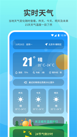 - 采用多數(shù)據(jù)源授權信息,晴天雨天各項指數(shù)綜合看,輕松安排戶內外活動。