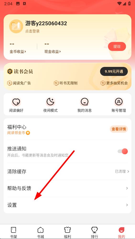 1、打開閱友小說應(yīng)用進(jìn)入書架界面,點(diǎn)擊底部導(dǎo)航欄最右側(cè)我的圖標(biāo),進(jìn)入個人相關(guān)操作頁面。
