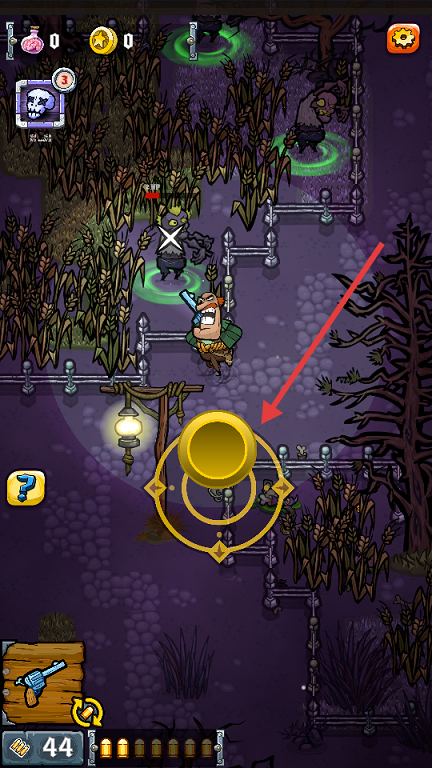 1、點(diǎn)擊屏幕任意位置移動(dòng)角色,自動(dòng)攻擊范圍內(nèi)的僵尸目標(biāo)。