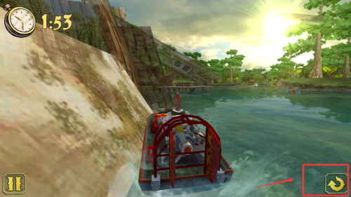 4、遭遇碰撞時(shí)點(diǎn)擊右下角復(fù)位鍵快速調(diào)整航向,繼續(xù)追逐戰(zhàn)。