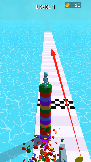 2、運用堆疊技巧搭建路徑,同時合理使用破壞能力清除阻礙,根據場景靈活切換玩法,推進關卡進程。