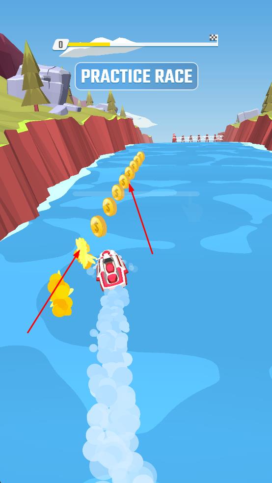 2、收集河道中的金幣與加速道具,提升賽艇速度,增強(qiáng)競(jìng)速優(yōu)勢(shì)。