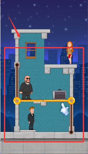 1、進(jìn)入關(guān)卡先觀察所有別針的位置和順序,注意障礙物和角色的位置關(guān)系,想清楚第一步該拉哪個(gè)才能避免觸發(fā)危險(xiǎn)。