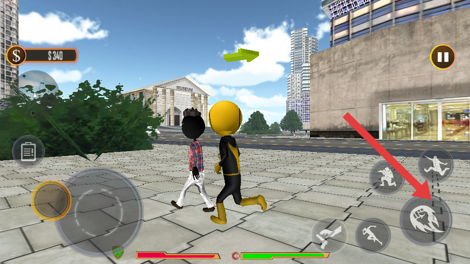 3、切換右側(cè)拳頭或者搏斗的按鈕近戰(zhàn),保持移動(dòng)躲避敵人的突然攻擊,跟著前方敵人進(jìn)行打擊。