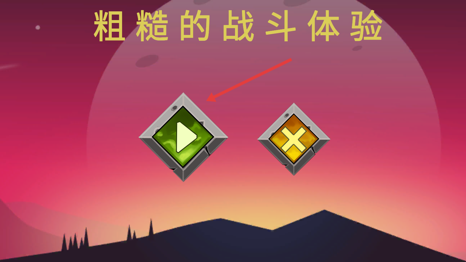 1、主界面選擇綠色播放按鈕,進入粗糙的戰(zhàn)斗體驗關卡,操控像素角色利用左側(cè)搖桿靈活移動。