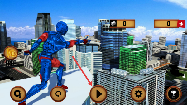 1、點擊主界面三角形播放按鈕,操控藍(lán)紅機(jī)甲角色,進(jìn)入城市場景,準(zhǔn)備執(zhí)行任務(wù)。