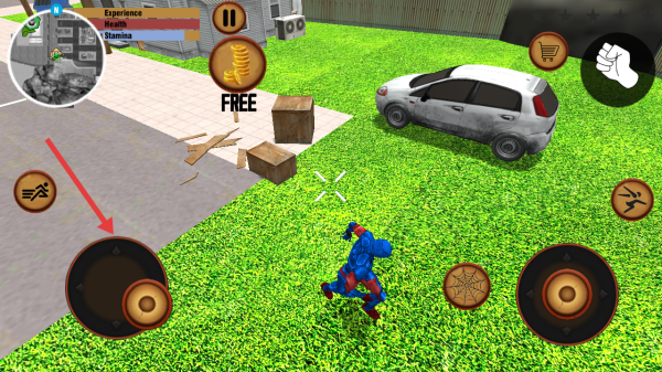 2、用左側(cè)搖桿控制移動,靠近目標(biāo)區(qū)域,留意場景道具木箱、汽車,可互動探索,積累資源。