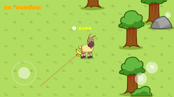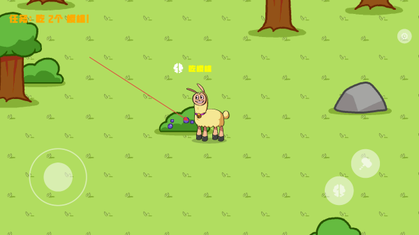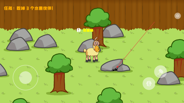 1、進(jìn)入游戲,通過(guò)左下方虛擬搖桿操控拉姆移動(dòng),在場(chǎng)景中尋找任務(wù)所需食物。