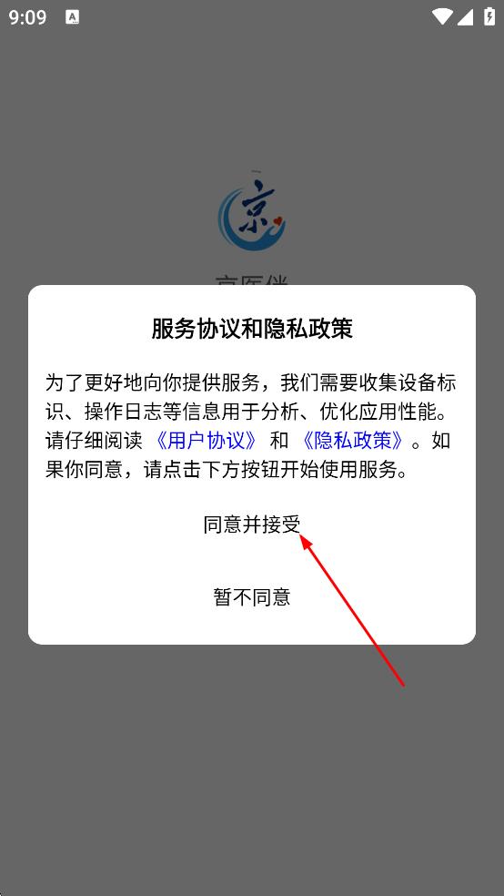 1、在服務(wù)協(xié)議彈窗中,點(diǎn)擊同意并接受,進(jìn)入登錄頁(yè)面。