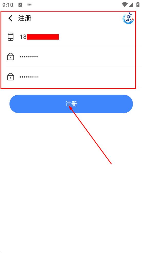 3、在注冊(cè)頁(yè)面,填好手機(jī)號(hào)、密碼等信息后,點(diǎn)擊注冊(cè),完成賬號(hào)注冊(cè)。