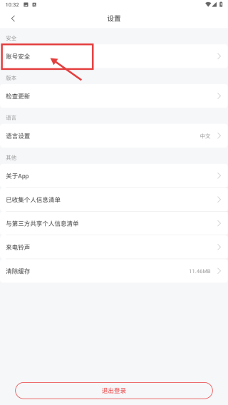 3、在設置頁面,點擊賬號安全選項,進入賬號安全管理界面。