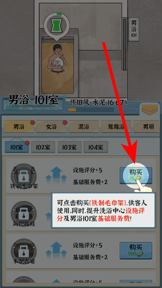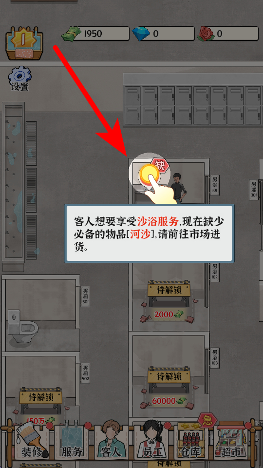 3、要關(guān)注浴場(chǎng)的資金等情況,通過(guò)為客人提供各類(lèi)洗浴服務(wù)、提升設(shè)施等方式,獲取收益,用收益可以進(jìn)一步完善浴場(chǎng)的各類(lèi)設(shè)施和服務(wù),吸引更多客人前來(lái)。