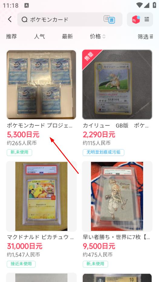 3、在寶可夢卡牌商品列表頁面,選擇想要購買的商品,進入商品詳情頁面。