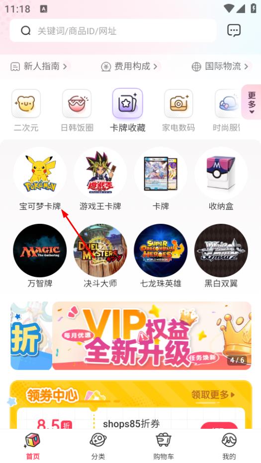 2、在卡牌收藏分類頁面,點擊寶可夢卡牌,進入寶可夢卡牌商品列表頁面。