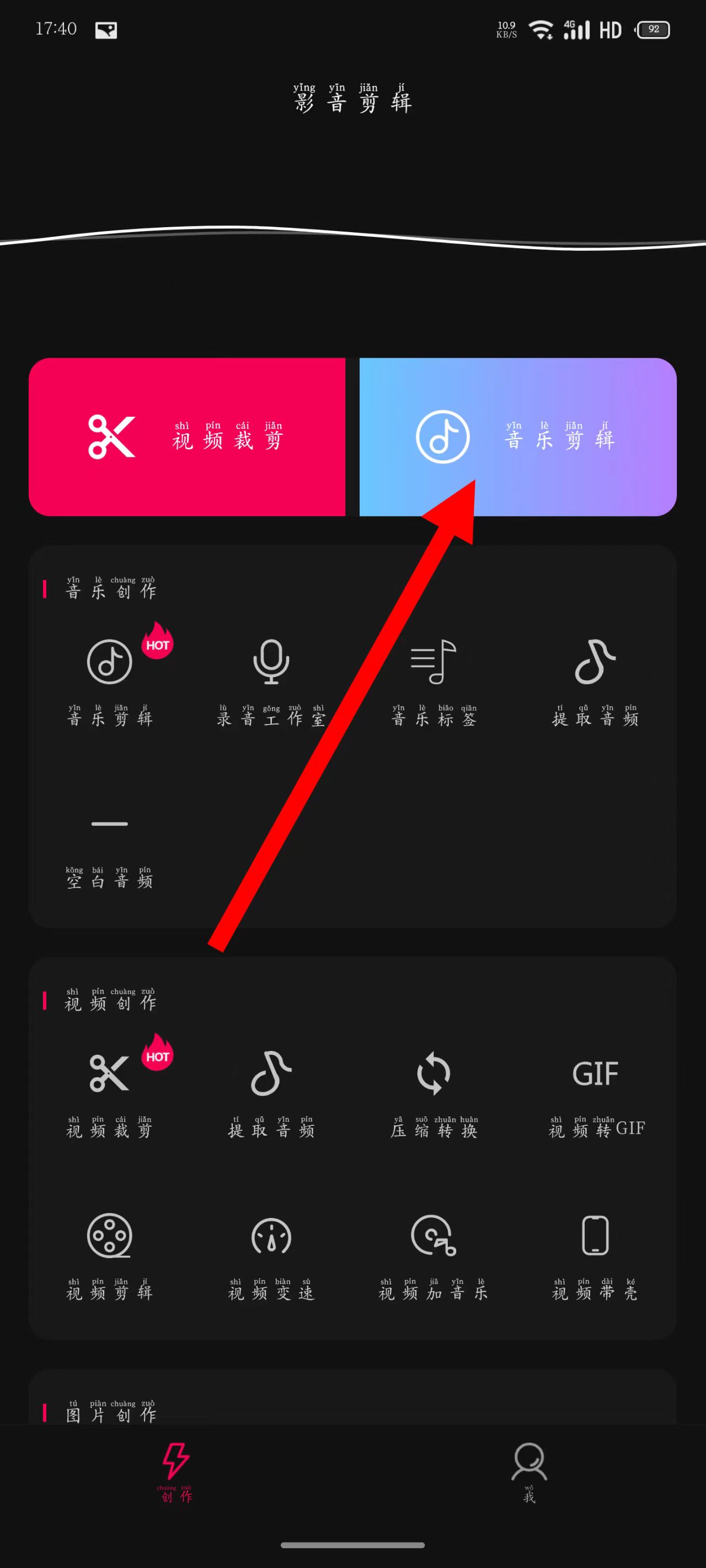 1、打開影音剪輯APP,點擊音樂剪輯選項。