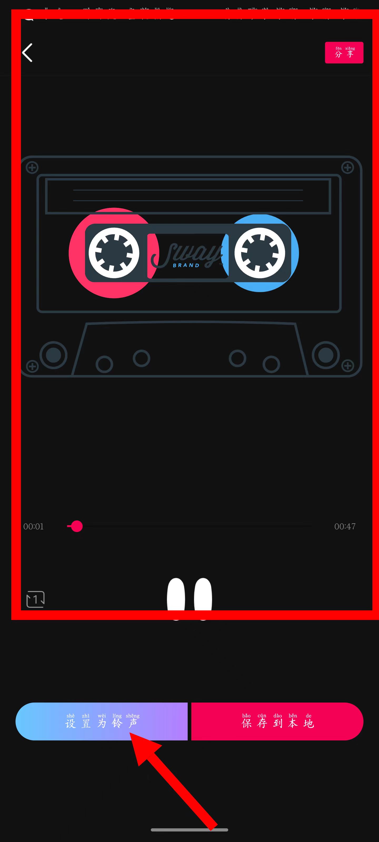 5、在最終頁面,可以選擇設(shè)置為鈴聲或保存到本地,完成音樂剪輯操作。