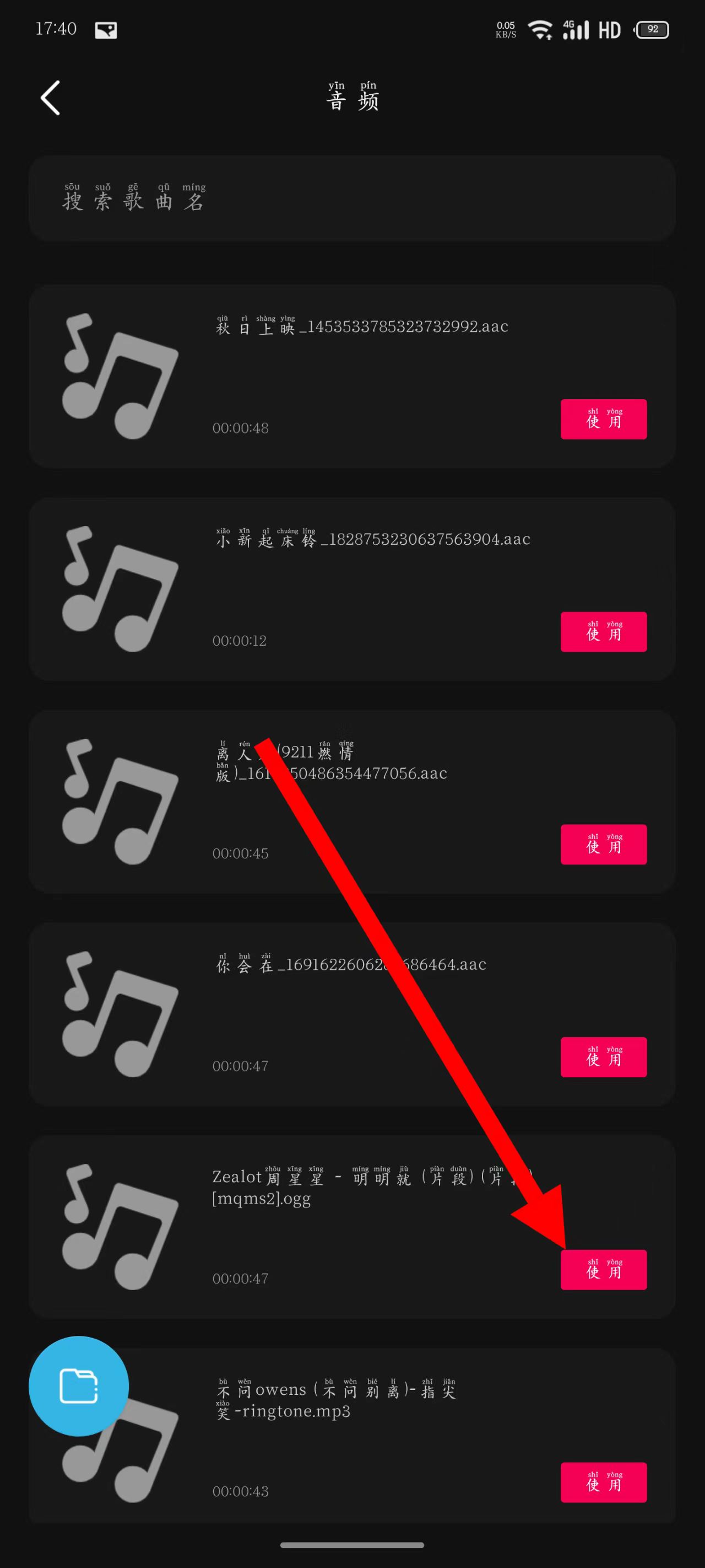 3、選擇你想要剪輯的音樂,點擊其右側(cè)的使用按鈕。