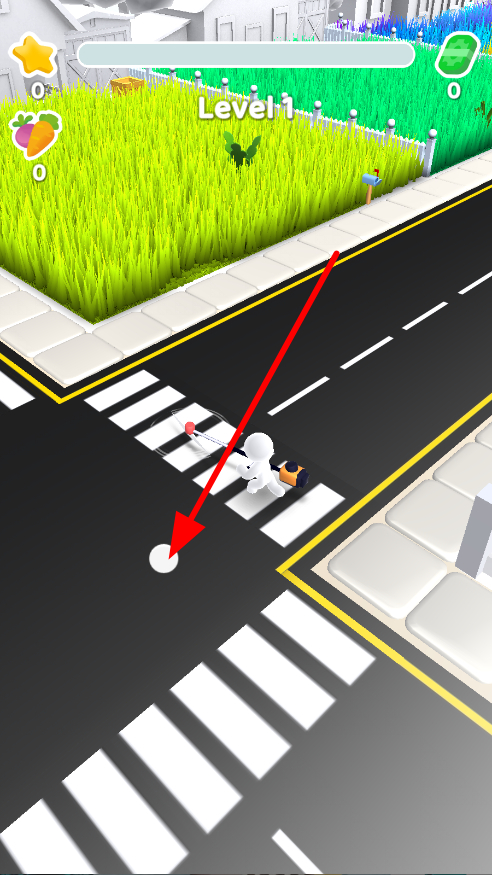 1、新手玩家滑動操控角色在道路等場景移動,找準時機進入草地區(qū)域,準備開啟割草操作,為后續(xù)的割草與收集做好準備。