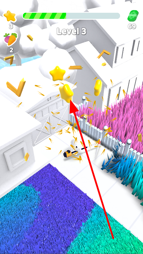 3、隨著割草的推進,還會出現(xiàn)星星等物品,積極收集這些物品,它們能為玩家?guī)硐鄳莫剟罨蛱嵘S富游玩體驗。