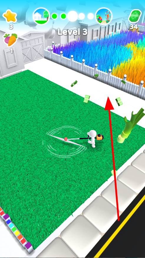 2、進入草地后,使用工具進行割草,在割草過程中,會出現(xiàn)蔬菜等道具,留意這些道具,適時收集,助力割草進程。