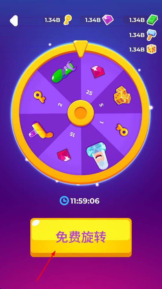 3、可參與轉(zhuǎn)盤抽獎,點擊免費旋轉(zhuǎn)按鈕,有機會獲得道具、寶石等獎勵。