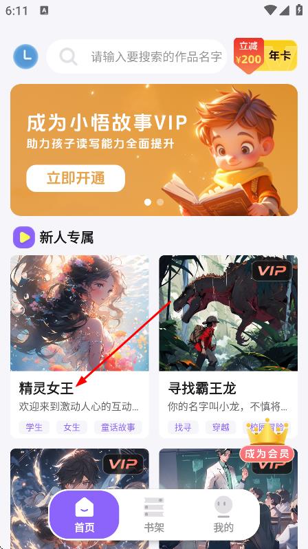 2、在小悟故事主頁面,點(diǎn)擊精靈女王,進(jìn)入該作品詳情頁面。