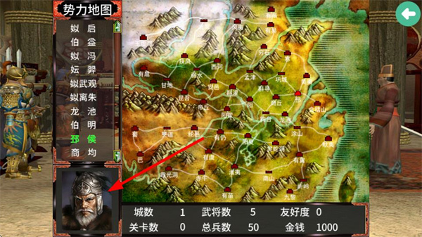 2、查看勢力地圖,了解己方勢力的城數(shù)、武將數(shù)等信息,可清晰掌握戰(zhàn)略布局,為發(fā)展內(nèi)政制定計劃。