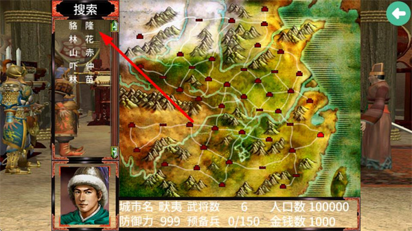 4、利用搜索功能,在勢力地圖中查找武將或資源點,可擴充武將陣容或獲取資源,助力勢力發(fā)展。