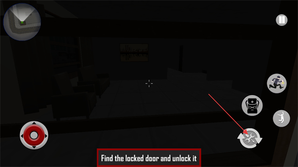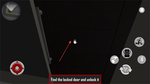 2、看到提示Find the locked door and unlock it后,找到有手形標(biāo)識(shí)的鎖著的門(mén)并點(diǎn)擊互動(dòng)。