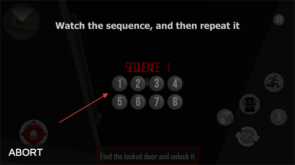 3、遇到密碼解鎖提示W(wǎng)atch the sequence,and then repeat it,記住數(shù)字順序后按順序點(diǎn)擊數(shù)字解鎖。