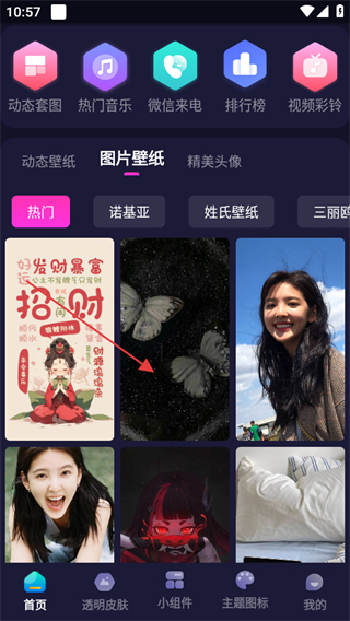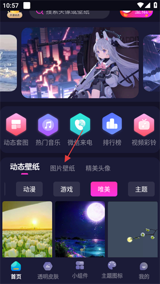 1、打開主題動態(tài)壁紙,點擊圖片壁紙,進入圖片壁紙頁面。
