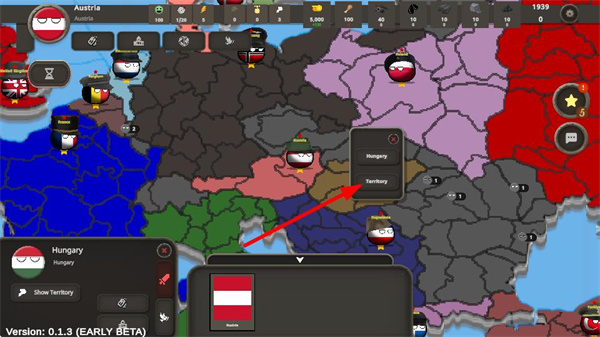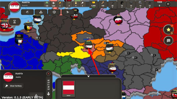 1、點擊地圖上的國家單位如奧地利,可查看其相關(guān)信息,用于制定外交,是掌控國家發(fā)展基礎(chǔ)操作。