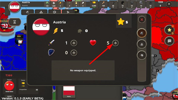 4、在國家屬性界面,升級心臟圖標(biāo)對應(yīng)屬性,提升國家生存或發(fā)展能力,升級點增強國家綜合實力。