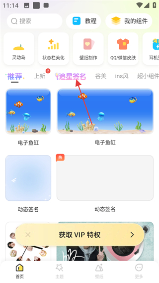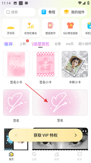 1、打開組件島WidgetIsland,點(diǎn)擊追星簽名,進(jìn)入追星簽名相關(guān)頁(yè)面。