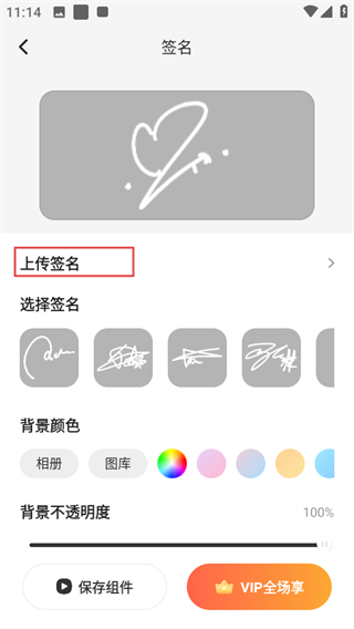 3、在簽名編輯頁(yè)面,點(diǎn)擊上傳簽名,進(jìn)入圖片編輯頁(yè)面。