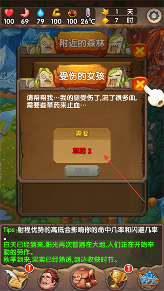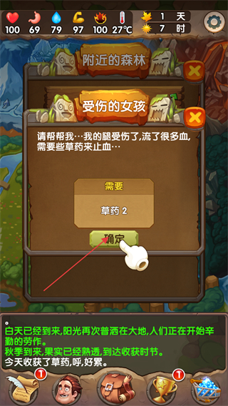 2、看到任務(wù)需求,受傷女孩需要草藥2,前往森林采集草藥。