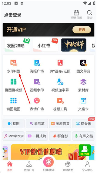 1、在微脈水印相機(jī)的首頁(yè),點(diǎn)擊水印P圖,進(jìn)入系統(tǒng)相冊(cè)頁(yè)面。