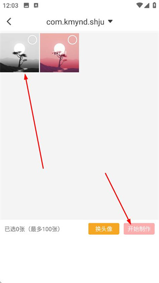3、在圖片選擇頁(yè)面,選擇要制作的圖片后,點(diǎn)擊開(kāi)始制作,進(jìn)入圖片處理頁(yè)面。