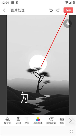 4、在圖片處理頁(yè)面,對(duì)圖片進(jìn)行編輯操作后,點(diǎn)擊保存,完成圖片處理并保存。