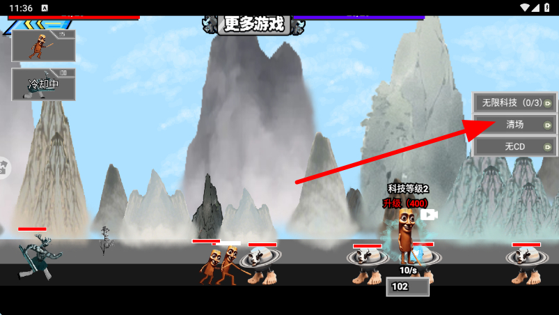 2、當敵方發(fā)起進攻時,部署的單位會自動與敵方進行戰(zhàn)斗,此時可根據戰(zhàn)況,點擊右側的清場等功能按鈕,對戰(zhàn)場局勢進行干預。