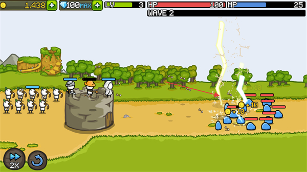 4、進(jìn)入WAVE2,面對(duì)更多敵人,利用升級(jí)后的防御力量,合理使用魔法值釋放技能,守護(hù)城堡。