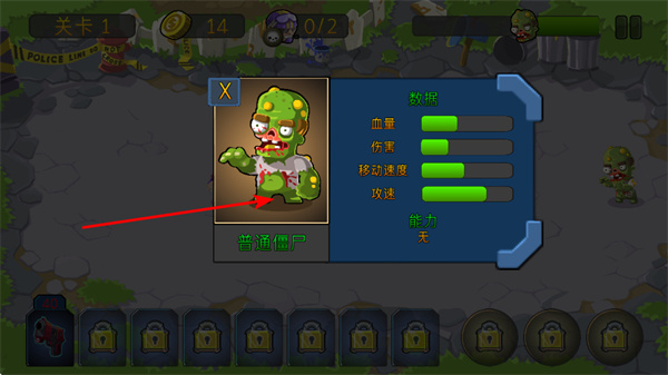 2、遇到普通僵尸時(shí),可查看其數(shù)據(jù)面板,了解其血量、傷害等屬性,以便針對(duì)性地部署戰(zhàn)斗單位。